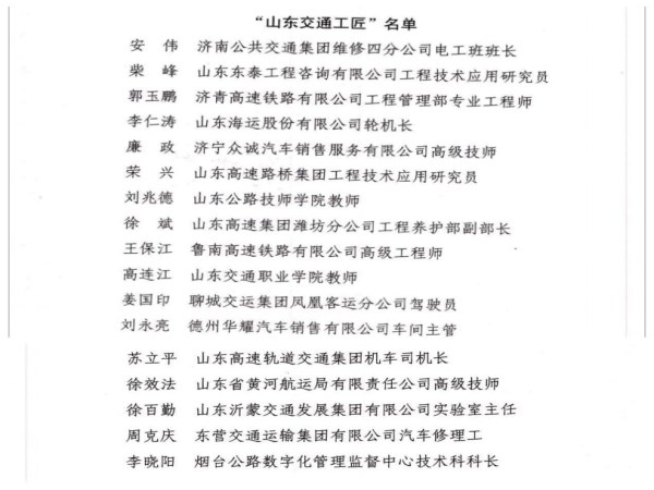 在山东省交通运输厅开展的“山东交通工匠”评选活动中,沂蒙交投集团徐百勤同志当选,成为全省17名“山东交通工匠”之一。