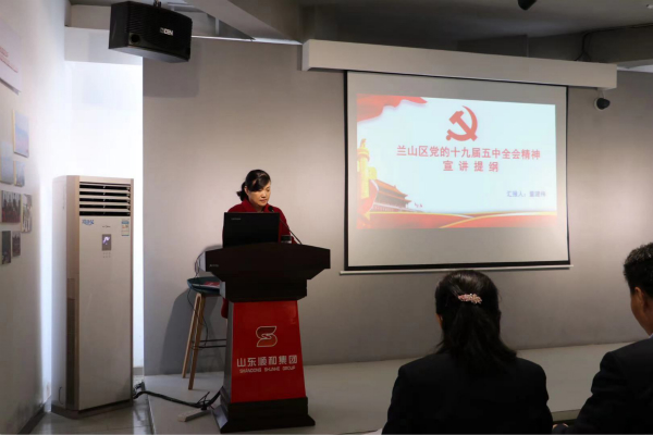 宣讲会上,董建梅围绕十九届五中全会召开的背景,以全会审议通过了《中共中央关于制定国民经济和社会发展第十四个五年规划和二〇三五年远景目标的建议》为切入点,从党的十九届五中全会重大意义、新发展阶段重要特征、2035年远景目标和“十四五”时期我国发展指导方针、构建新发展格局着力点、全面开创兰山发展新局面等七个方面全面系统、深入浅出地对全会精神作了全方位的讲解和阐释,并根据顺和集团实际情况在安全生产、商贸物流发展等方面进行扩展。