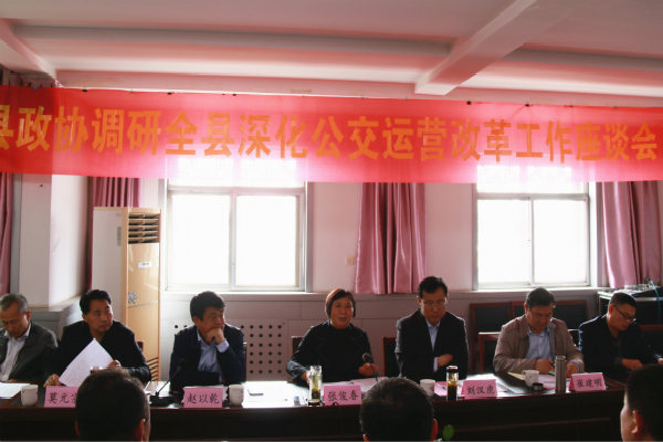 会上,临沂交运集团莒南运输有限公司汇报全县公交运营工作情况;县交通运输局介绍深化公交改革工作情况;县财政局、发改局补充汇报相关工作情况;部分市、县政协委员进行座谈发言;县政府副县长、公安局局长孟今朝同志通报全县相关工作情况;最后,张主席作了讲话。