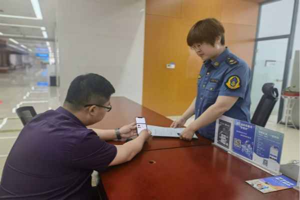 近日,国民出行(山东)网络科技有限公司临沂分公司员工孙先生前往市交通运输局驻政务服务中心窗口,办理网络预约出租汽车运输证核发业务时,因忘记携带本人身份证正一筹莫展。市交通运输局窗口工作人员张甄了解情况后,主动帮助孙先生完成“爱山东APP”电子身份证的申领工作,并核验留存复印件,为其公司核发了网络预约出租汽车运输证。