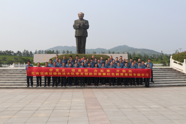 端午节前夕,莒南县交通运输局组织执法大队两个党支部全体共七十余名党员干部由县交通运输执法大队第一支部书记、县交通运输执法大队大队长李先勇带队赴厉家寨红色教育基地开展“学党史、悟思想、办实事、开新局”专题学习活动,属地党委坪上镇党委书记许春娜陪同。