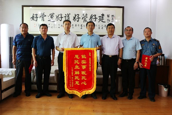 8月26日上午,蒙阴县垛庄镇党委书记宋强一行手持一面书有“思民生解民意 做实事暖民心”的锦旗来到县交通运输局,代表受益群众当面感谢该局派驻“第一书记”、“驻村帮扶干部”等为当地老百姓办实事、惠民生。近年来,蒙阴县交通运输局立足交通实际加快推进城乡共建,派驻的“第一书记”和“驻村帮扶干部”扎根垛庄镇丁旺庄村、石山庄社区,大力支持村居建设、村内发展,着力改善百姓生产生活条件,受到了群众以及党委政府的一致好评。
