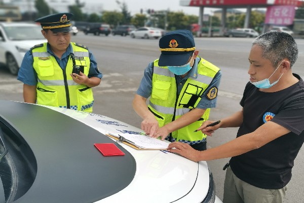 行动开始不久,垛庄镇孟良崮高速路口一辆七座白色大通牌小型客车驶入执法人员的视线,“这是我的执法证件,请配合我们的检查。”敬礼,亮证,交通执法人员冒雨对这辆客车展开了检查。经查发现,车辆和驾驶人员均具备相关证件,但通过进一步了解得知,车上6名乘客中有3名是通过网络平台预约乘车,另3名乘客则是通过电话联系的方式乘车,针对这辆网约车涉嫌违规营运的情况,执法人员对其进行了进一步的调查处理。