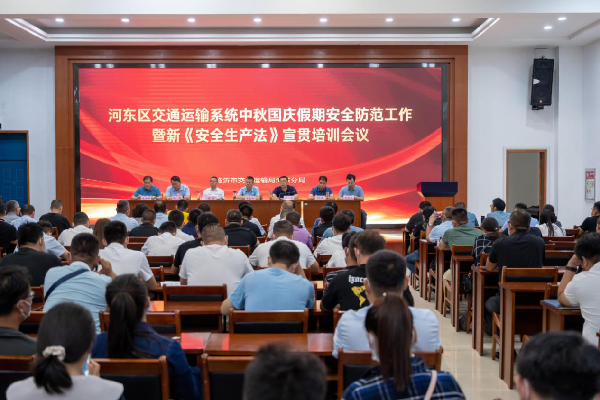 9月18日上午,河东交通运输分局组织召开中秋国庆假期安全防范工作暨新《安全生产法》宣贯培训会议,分局部分班子成员、中层以上干部、相关企业主要负责人参加会议,河东交通发展服务中心主任闫加方同志主持会议。