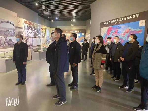 在沂蒙山小调诞生地,党员参观了沂蒙山小调博物馆、大众日报社印刷厂旧址等,全体党员齐唱《沂蒙山小调》,在熟悉的旋律中感受水乳交融、生死与共的沂蒙精神,抒发内心对党和祖国的热爱。