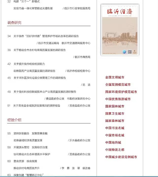 为深化农村公路管理养护体制改革,推动我市“四好农村路”高质量发展,切实解决“四好农村路”工作中管好、护好的短板问题,针对我市农村公路里程较长、技术等级较低、养护任务重、养护资金紧张、养护市场化水平不高的实际,市交通运输局、市交通路网服务中心结合工作实际,组织开展广泛调研,形成《关于“四好农村路”管理养护市场化改革的研究》专项调研课题,提报并入选2022年度全市政府系统专项调研课题,调研成果在市政府主管、市政府决策研究中心主办的《临沂经济》2022年第5期刊发。