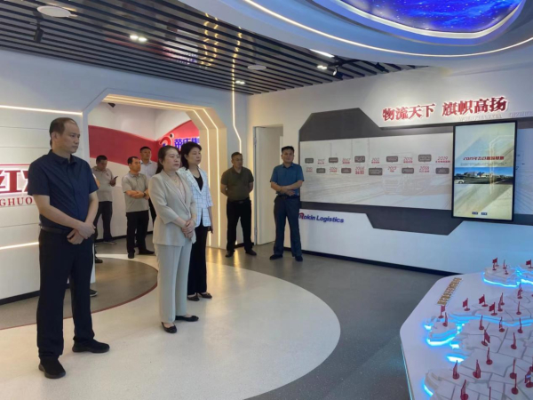 在荣庆物流园区,调研组参观了园区物流发展展厅,听取行业党建工作开展情况汇报,并详细询问了企业发展遇到的困难和问题。