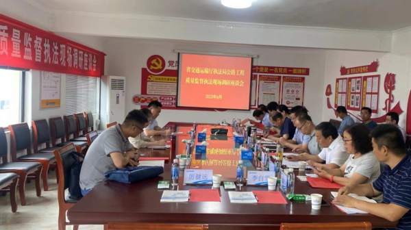 在G205山深线郯城绕城段改建工程施工现场,调研组现场查看了工程施工进度,具体了解工程质量安全管理及执法监管措施,并进行座谈交流。