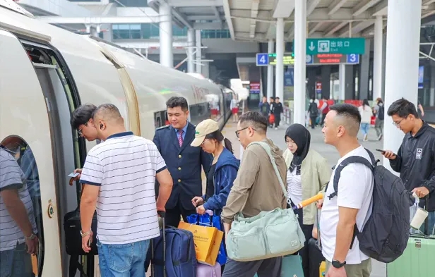 节日期间,铁路客运共投入班列939列,运送乘客31.55万人次,其中高铁615列、普铁324列,加开高峰临客8对。