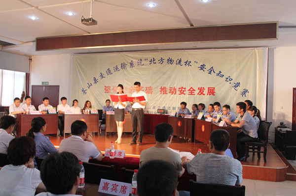 今年6月份是全国第12个“全国安全生产月”,为全面传播安全生产知识,增强全县交通运输系统全体干部职工与从业人员的安全意识,营造关爱生命、关注安全的浓厚氛围,促进交通运输事业的和谐发展、持续发展、安全发展。苍山县于6月29日隆重举行了以“强化安全基础,推动安全发展”为主题的安全生产知识竞赛活动。经过初赛、预赛等环节层层选拔,在47家运输企业代表队中,选拔出山东荣庆物流、北方兴业物流、鲁安驾校等6支代表队参加决赛。经过激烈的角逐,山东荣庆机动车检测线获得决赛第一名。本次竞赛活动是苍山县交通运输局“安全生产月”期间开展的继安全生产知识培训、安全生产大检查活动后的又一重要活动,使全县交通运输企业及从业人员进一步掌握了更多的安全生产知识,深刻领悟到“以人为本、安全第一”的重要意义,在全县交通运输系统范围内掀起了“时时讲安全,处处有安全、事事保安全”的新高潮。