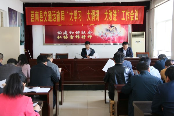 3月31日上午,莒南县交通运输局在局三楼会议室召开了“大学习、大调研、大改进”活动专题动员会,传达学习县委开展“大学习、大调研、大改进”工作会议精神,对全局“大学习、大调研、大改进”作安排部署。局属各单位中层以上干部参加了会议。局党组书记、局长袁兆军作了讲话部署。