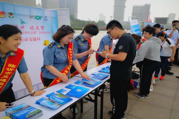 为扎实推进我市文明城市创建工作,充分展示我市各行业系统青年文明号创建工作中良好的精神面貌,5月27日上午,作为省级青年文明号的临沂市交通运输管理指挥中心投诉督查科的工作人员积极参加了由临沂市委宣传部、共青团临沂市委、临沂市文明办、临沂市广播电视台、临沂市创建青年文明号活动组委会主办的“我提升 你点赞”重走青年文明号之路主题活动。市委常委、宣传部部长任刚出席了此次活动,现场共有22个行业系统的青年文明号集体为市民提供咨询服务。