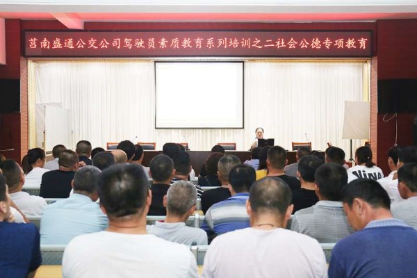 为进一步提升城市公交旅客运输服务质量,规范驾驶员的日常运营行为,打造莒南盛通城市公交品牌,为全县人民提供优质便捷的服务,6月12日,莒南盛通公交公司在临沂农校莒南分校会议室举办公交驾驶员“社会公德专项教育”培训班,聘请临沂农校莒南分校张涵老师为该公司50余名公交车辆驾驶人进行了一场精彩纷呈的培训。