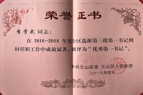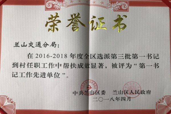 近日,兰山区委区政府对全区第三批第一书记工作总结进行总结表彰。兰山交通运输分局在2016—2018年度全区选派第三批第一书记到村任职工作中帮扶成效显著,被评为“第一书记工作先进单位”。分局选派第一书记李学武被评为“优秀第一书记”。