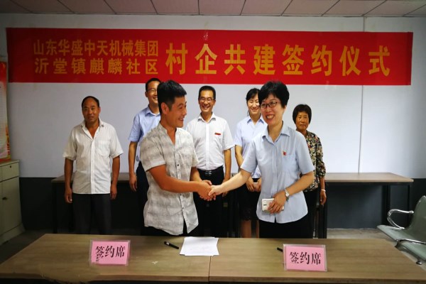 7月26日上午,市交通运输局派驻第一书记任职村麒麟社区和山东华盛中天机械集团举行村企共建签约仪式。