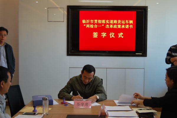 10月10日,按照交通运输部、公安部、市场监管总局关于进一步落实道路货运车辆检验检测改革政策有关工作的通知精神,市运管处召集全市17家检测站的法定代表人签定《贯彻落实道路货运车辆“两检合一”改革政策承诺书》。市运管处、市交警支队、市质监局和市检测协会有关负责同志参加了签订仪式。