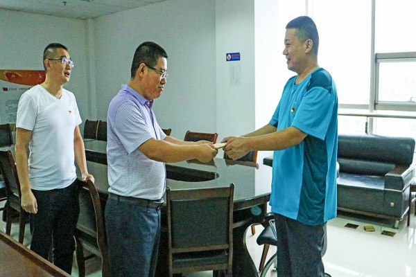 7月19日上午,兰山交通运输分局副局长倪华把1000元的慰问金交到了公路所郭志江同志手中,把党的关怀和温暖送到了职工的心坎上。