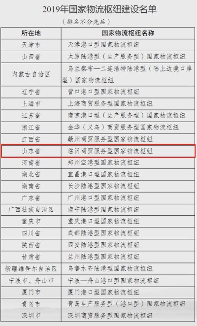 近日,国家发展改革委、交通运输部联合印发《关于做好2019年国家物流枢纽建设工作的通知》(发改经贸﹝2019﹞1475号),临沂、上海、西安等23个物流枢纽入选2019年国家物流枢纽建设名单(附后),涵盖陆港型、空港型、港口型、生产服务型、商贸服务型、陆上边境口岸型等6种类型,区域、类型分布相对均衡,有利于支撑“一带一路”建设、京津冀协同发展、长江经济带发展、粤港澳大湾区建设、长三角区域一体化发展、西部陆海新通道等重大战略实施和促进形成强大国内市场。国家发展改革委将会同有关部门通过召开现场会、推动建立国家物流枢纽联盟等方式,加强国家物流枢纽间的业务对接、标准协调和信息互联,加快构建联通内外、交织成网、高效便捷的“通道+枢纽+网络”物流运作体系,推动形成国家物流枢纽网络框架和基础支撑,促进区域均衡协调发展和全国统一市场建设,为经济高质量发展奠定坚实基础。同时,抓紧统筹做好2020年国家物流枢纽建设工作