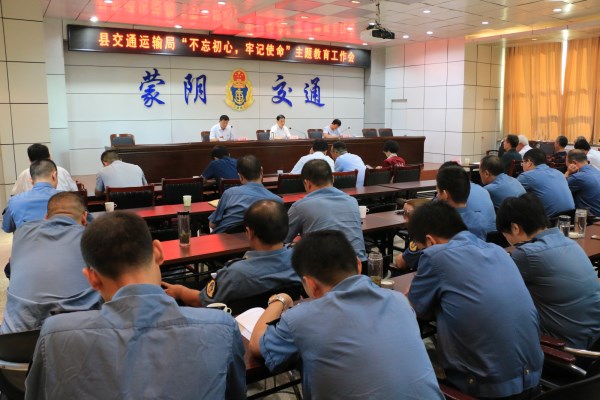 9月18日,蒙阴县交通运输局召开“不忘初心、牢记使命”主题教育工作会议,贯彻落实党中央和省市县委要求,安排部署全局“不忘初心、牢记使命”主题教育。县局党组书记、局长刘爱东同志作动员讲话,县委第六巡回指导组组长赵增霞同志到会指导并提出要求。