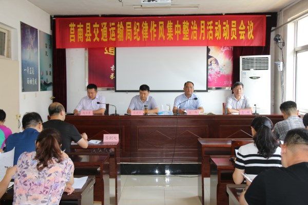 7月7日,为进一步改进全局干部职工纪律作风,提高工作效率,优化交通发展环境,莒南县交通运输局召开以“强作风、明纪律、知敬畏、存戒惧、守底线”为主题的干部纪律作风集中整治月活动动员会议。县交通运输局党组书记、局长庄伟出席会议并讲话,局党组成员、副局长、铁路办主任赵永涛主持会议,局领导班子成员、副科级干部及中层以上干部参加了会议。